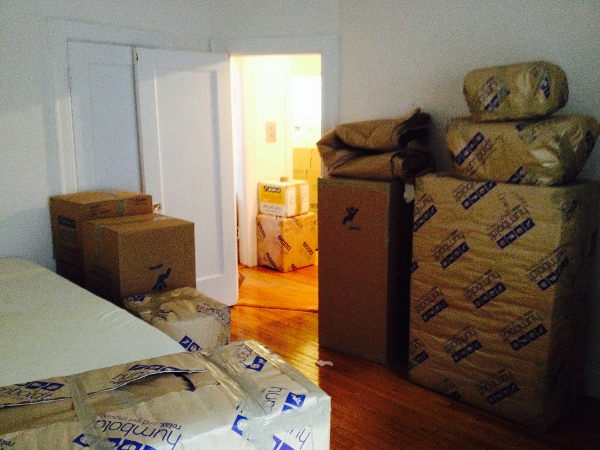 This morning was particularly chaotic with the arrival of the movers. Even though they did all of the work, packing up all of our belongings with painstaking care, we’re both still completely wiped out. I’m really going to miss our apartment on Marlborough Street and will always remember the time we spent there.